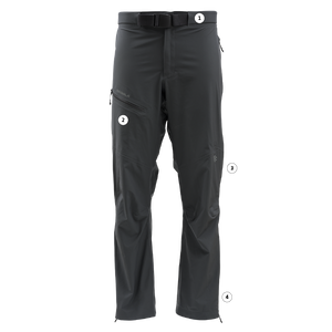 YKK® Aquaguard® zippered thigh pockets for safe, convenient storage.