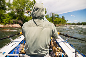 Our Sol Tactical Hoody is essential angling apparel for sunny summer days on a trout stream. Heat and sun exposure can wear you out and damage your skin, so we put as much thought and design technology into our sun shirts as our rain jackets. Featuring a knit fabric in the body to maximize airflow; a Primeflex™ stretch woven fabric in high wear areas; a scuba hood that shields your face without obscuring your vision, true 50 UPF protection; and three flush pockets that can carry just enough essentials to sneak on a pod of risers. This isn’t just a sun shirt. This is sun gear.